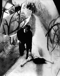 Los decorados utilizados, radicalmente opuestos a toda intención naturalista, consistían en telas pintadas, recreando falsas perspectivas. En casi todos los planos se pueden ver que las paredes están inclinadas, las ventanas son deformes y los caminos son curvos y retorcidos.
